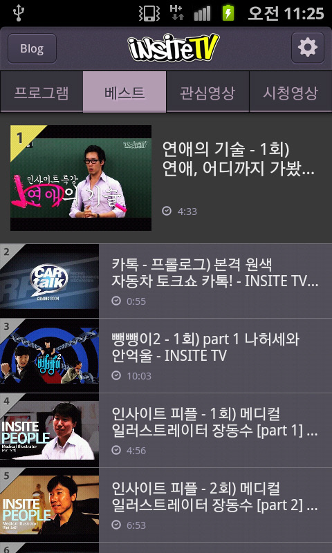 인사이트TV 앱은 '프로그램', '베스트', '관심영상' 등의 메뉴로 구성될 계획이다. 인사이트TV 앱은 안드로이드 마켓과 애플스토어에서 무료로 다운로드 받을 수 있으며, 회원 가입 등 별도의 절차 없이 모든 영상의 감상이 가능하다. 또 앱 내의 'Blog' 버튼 클릭할 경우 프로그램의 비하인드 스토리와 스탭들의 일상 등을 만나볼 수 있는 인사이트TV의 블로그와도 바로 연동된다.