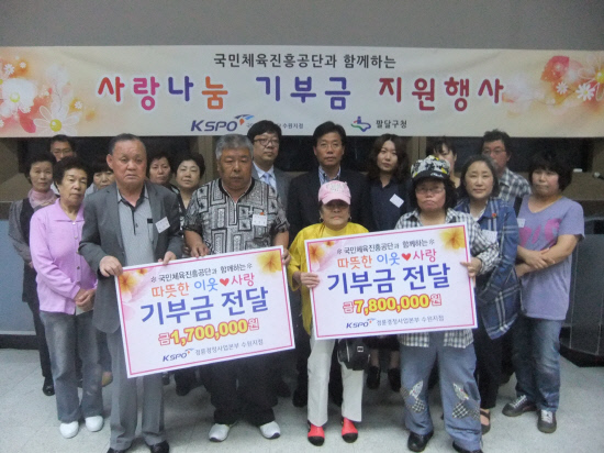 국민체육진흥공단(이사장 정정택) 경륜경정사업본부 수원지점은 가정의 달을 맞아 수원지점 고객홀에서 수원시 팔달구 청장 및 팔달구 관계자와 기부금 수혜기관 및 수혜자, 50여명이 참석한 가운데 사랑나눔기부금 전달식 행사를 가졌다.