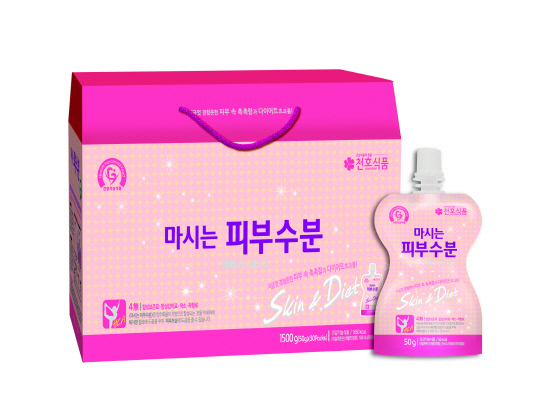 천호식품은 피부 및 다이어트에 좋은 건강기능식품 '마시는 피부수분(50g*30팩)'을 출시했다.