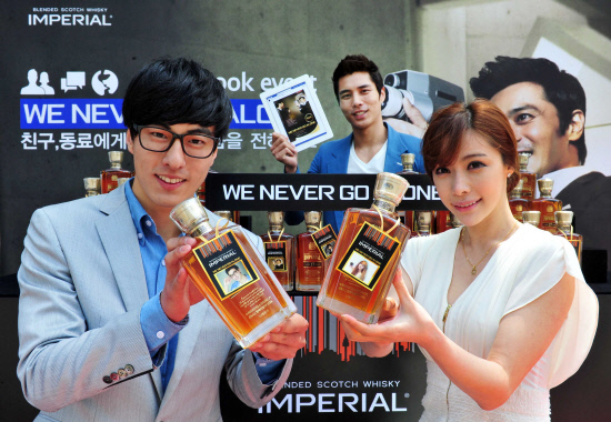 국내 위스키 업계 리더인 페르노리카 코리아가 15일 광화문 청계광장 앞에서 대한민국 대표 위스키 임페리얼의 브랜드 캠페인 '2012 위 네버 고 얼론(We never go alone)' 런칭을 기념해 직장인 대상으로 친구, 동료들에게 고마운 마음을 전하는 이벤트를 펼쳤다.
