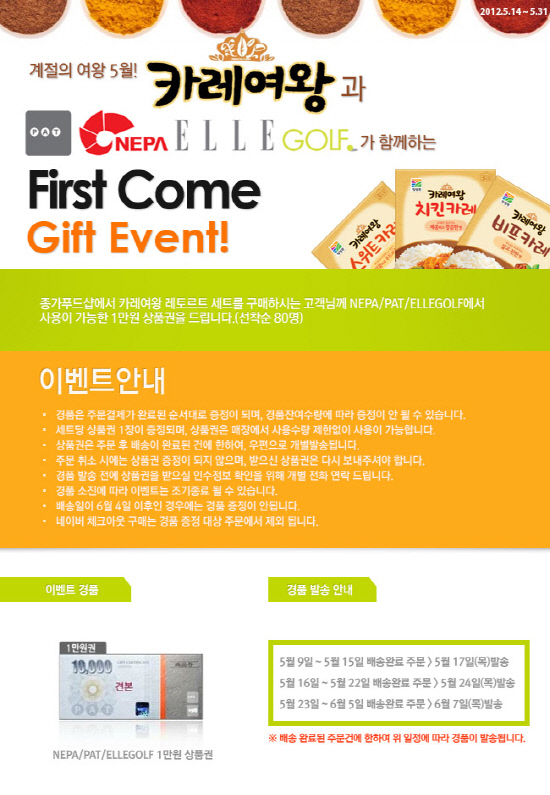대상 청정원은 온라인 쇼핑몰 종가푸드샵(www.chonggafood.com)을 통해 이달 말까지 '카레여왕' 세트 구매고객에게 아웃도어 의류 상품권을 증정하는 이벤트를 진행한다. 카레여왕은 밀가루 대신 100% 우리 쌀을 넣어 깔끔하고 부드러운 맛을 자랑하는 프리미엄 즉석 카레이다.
