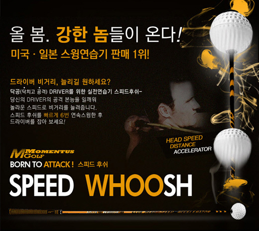 드라이버는 짧은 스윙 연습기로 연습하는 것보다는 실제와 비슷해야 효과적이다. 미국, 일본에서도 인기를 끌고 있는 스피드 후쉬는 길이 120cm, 무게 325g으로 실제 드라이버 연습 시와 근사한 감을 느낄 수 있다. 또 실제 드라이버 보다 부드러운 샤프트를 사용하여 힘이 아닌 크고 부드러운 스윙으로 장타를 칠 수 있게 도와준다.