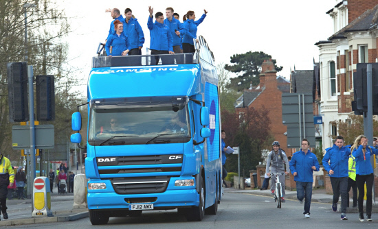 삼성전자가 19일부터 영국 1000여개 도시에서 70일간 펼쳐지는 2012년 런던 올림픽 성화봉송을 시작, 올림픽 마케팅에 돌입한다. 삼성전자의 성화봉송 주제인 자신의 역량을 한 단계 더 발전시켜 지역 사회에 공헌한 인물을 발굴하는 의미의 'Gone the Extra Mile'에 따라 전 세계 58개국에서 지역 발전에 기여한 1360명을 주자로 선발했다.
