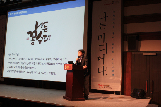 가장 기대를 모았던 나꼼수 김용민씨는 <나꼼수 이렇게 만들었다! 나꼼수의 흥행 비결과 제작 뒷이야기>에 대해 발표해 나꼼수 제작 시 겪었던 다양한 에피소드를 들려주어 컨퍼런스의 재미를 더했다.
