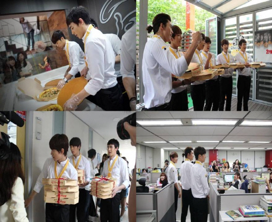 닉쿤/준호/찬성 팀과 우영/택연/준수 팀으로 나누어 안양소재의 A대학교와 여의도 소재의 Y기업 사무실을 깜짝 방문해 신제품 2PM 피자 6종과 홈샐러드, 케이준치킨샐러드, 베스트치킨 플래터 등 미스터피자의 인기 메뉴를 전달하고, 함께 간단한 게임을 즐겼다.