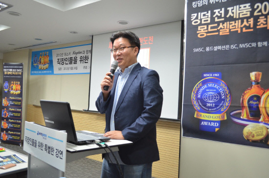 하이트진로 그룹의 위스키 '킹덤'이 지난 24일 '한국홍보전문가' 서경덕 교수를 초빙해 직장인들을 대상으로 강연을 진행했다.