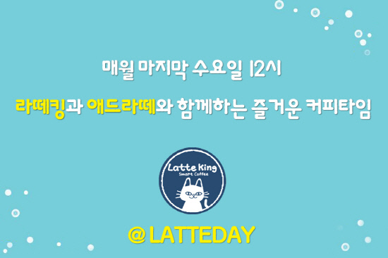 앱디스코가 매주 수요일 커피전문점에서 50% 할인쿠폰을 지급하는 라떼데이를 실시한다.