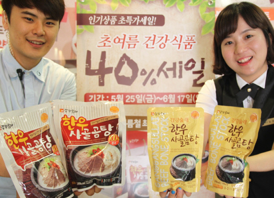 김상국 강강술래 사장은 "때이른 무더위가 계속되면서 건강관리를 위해 보양식을 찾는 이들이 늘면서 고객감사 할인이벤트를 진행하게 됐다"며 "저렴하게 보신상품도 장만하고 본인은 물론 가족건강까지 챙기시길 바란다"고 말했다.