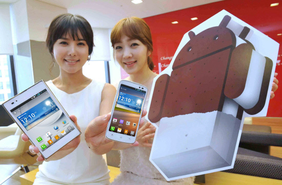 LG전자가 안드로이드 4.0 운영체제 아이스크림 샌드위치(이하 ICS) 업그레이드를 30일부터 실시한다. 옵티머스 LTE의 이통사 별 업그레이드를 시작해 6월까지 '옵티머스 Vu:(뷰)', '옵티머스 LTE Tag', '프라다폰 3.0' 등 4개 모델의 ICS 업그레이드가 진행된다.