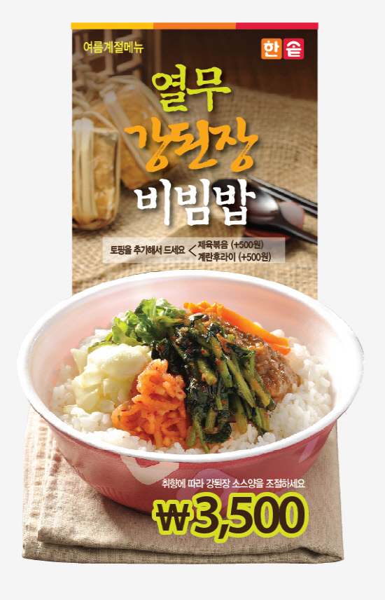 테이크아웃 도시락 업체 한솥도시락이 최근 여름 식품 열무를 활용한 '열무 강된장 비빔밥'을 출시했다.