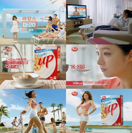 제주도의 곽지해수욕장과 샤인빌리조트 등에서 촬영된 여름날의 'D-day다이어트' 편에는 '봄날' 편에 이어 탤런트 신세경이 등장한다.