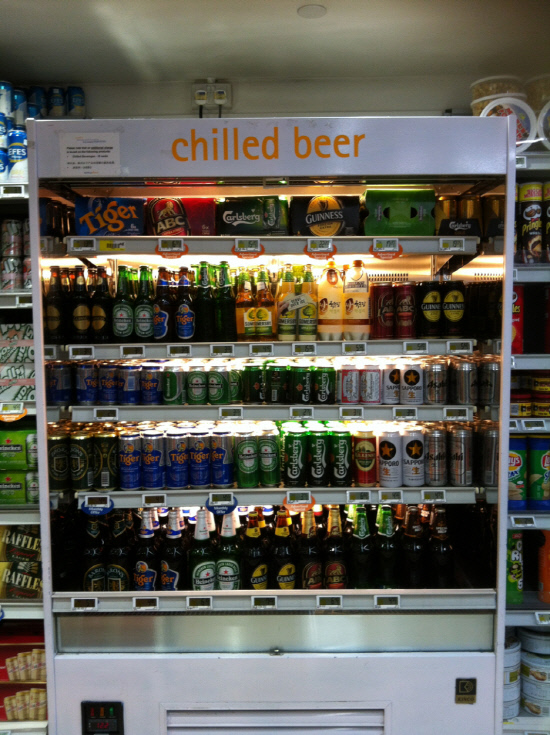 | ◇싱가포르 맥주매장에 진열된 국순당 쌀막걸리(위에서 두번째 칸) |