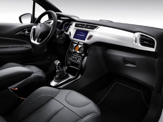 시트로엥 DS3는 전장 3.95m, 전폭 1.72m, 전고 1.48m의 컴팩트한 스타일임에도 대시 보드를 높이고 레그룸을 넓혀 5개의 좌석과 285리터의 동급 최대 크기의 넓은 트렁크 공간을 제공한다.