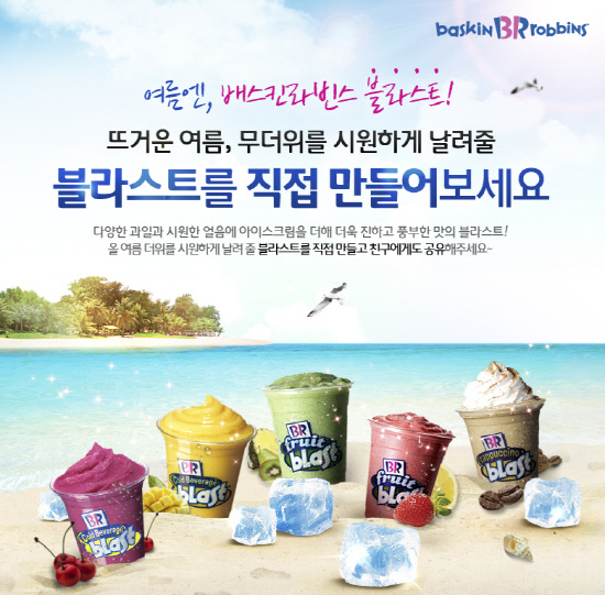BR코리아가 운영하는 배스킨라빈스가 여름을 맞아 망고, 체리 블라스트 등 아이스크림 블렌디드 음료 블라스트를 다양하게 선보였다.