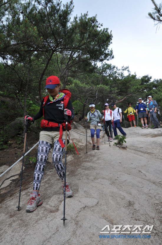 ○…덕숭산 산행에는 노스페이스 클라이밍팀 소속의 한국 대표적인 여성 산악인 이명희씨가 참가했다. 2006년 알프스 여성원정대로 따뀔삼각북벽, 그랑드죠라스 북벽에 이어 몽블랑 등정을 한 이씨는 2009년 알프스 아이거북벽을 등반하기도 했다. 이씨는 올해 초 아르헨티나 파타고니아 지역의 대표적인 암벽인 피츠로이(3405m)를 3번의 도전 끝에 오르는 과정을 영상과 자료로 소개했다. 남편인 등반가 최석문씨, 그리고 아들 최보건군과 동행해 덕숭산을 함께 누비기도 했다.