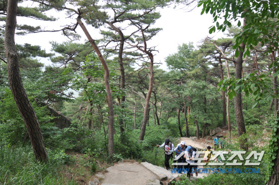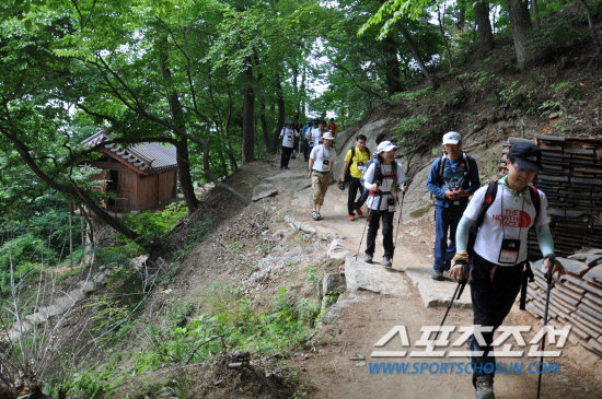 여유있는 산행이다보니 쉬는 시간이 그 어느 때보다 많다. 어김없이 깔깔대는 소리가 들린다. 전날 숙소의 같은 방에서 함께 지냈던 김혜연 한재복 이지희 김정주 이옥금 이정미 윤영숙씨 등 7명은 혼자 혹은 남편과 함께 참가했기에 서로 모르는 사이. 하지만 하룻밤의 인연은 연령대도 다른 이들을 서로 언니와 동생으로 묶었다. 이번 산행이 끝나고도 계속 만나자며 의기투합하는 모습도 보였다. 덕숭산이 맺어준 이들의 소중한 인연이 계속 되기를 바라본다.