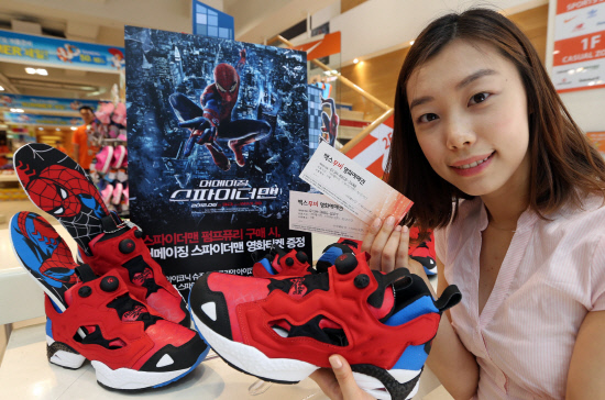 글로벌 스포츠 브랜드 리복이 14일 오후 1시 슈즈 브랜드 멀티샵 레스모아 명동점에서 스파이더맨 펌프 퓨리 출시 기념 이벤트를 화려하게 진행했다.