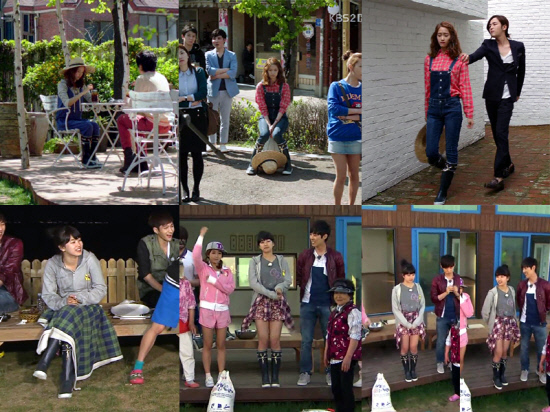 '사랑비' 속 윤아는 붉은 색 체크셔츠와 청 멜빵바지를 함께 매치, 발랄한 컨추리 룩을 연출했다. 여기에 정원사라는 직업적 특성을 살리기 위해 커다란 밀짚모자를 효과적으로 활용한 것이 포인트다.
