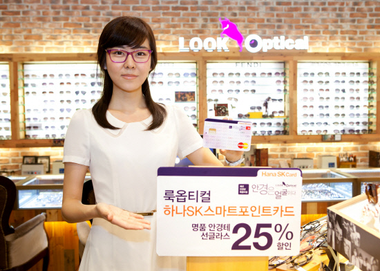 이번 협약을 통해 출시되는 '룩옵티컬 하나SK스마트포인트카드'는 룩옵티컬 매장(백화점, 복합몰 매장은 제외)에서 판매되는 명품 안경테, 선글라스의 25% 할인을 비롯해 하나SK카드 가맹점에서 사용금액의 0.5%가 OK캐쉬백으로 적립되는 신용카드다. 특히 매달 카드 사용이 가장 많은 업종 2개를 자동으로 집계해 이용액의 4배에 해당하는 포인트를 적립해주며, 놀이공원 최고 50% 할인, 주유 리터당 50원 적립 등 다양한 혜택이 적용되는 카드로 쇼핑과 레저를 즐기는 젊은 층에게 큰 호응을 얻을 것으로 기대되고 있다.