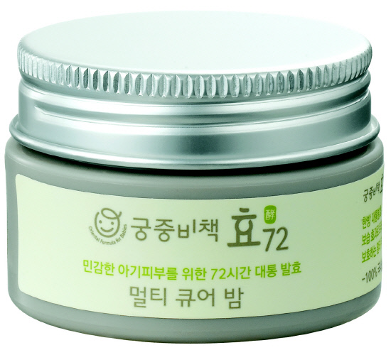 한방 유아 스킨케어 브랜드 궁중비책이 최근 출시한 '궁중비책 효72'의 '멀티 큐어 밤(20g, 2만6000원)'은 아기피부에 유익한 100% 국내산 한방 약재를 대나무 통에서 72시간 자연 발효시킨 제품이다. 브랜드 관계자 주장에 따르면, 아토피와 피부트러블, 피부건조증 등 민감한 피부의 개선에 도움을 준다. 여기에 여름철 벌레물림, 자외선에 의한 손상, 잦은 야외 활동 등으로 생길 수 있는 상처 등의 빠른 회복을 돕는 효과가 있어 보습뿐 아니라 진정 작용까지 가능해 바쁜 엄마의 일손을 덜어준다. 인공방부제, 인공향 등이 첨가되지 않았으며 천연유래 성분으로 만들어져 연고 사용이 조심스러운 신생아도 안심하고 사용할 수 있다.