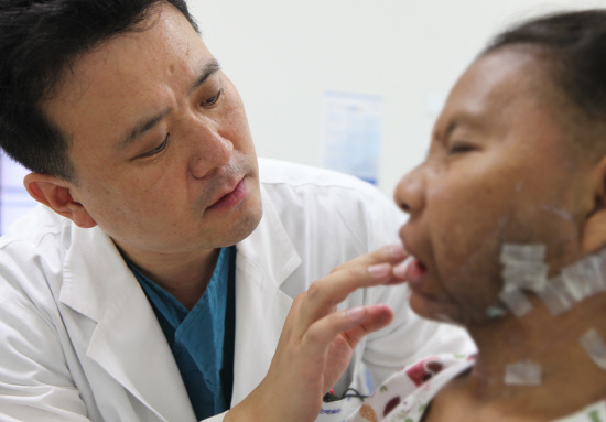 아민씨는 지난 4월 인도네시아 현지에서 아래턱 뼈 일부와 종양 일부를 제거해 기도를 확보하는 응급시술을 받고 한국에 왔고, 서울대 치과병원에서 남아있던 종양을 모두 제거하는 수술과 제거된 부위를 복원하기 위한 턱뼈 재건 수술을 받았다.