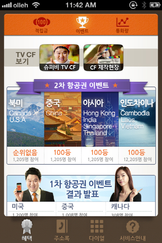 슈퍼비는 국제전화를 사용할 일이 없더라도 슈퍼비 앱내 '국가별 통화체험'을 통해서 통화량을 모을 수 있고, '통화분수 조르기 및 선물하기 기능'을 통해 지인들의 무료통화분수를 선물 받아 모을 수 있어 앱테크 어플로 인기다. 7월 중순 한층 업그레이드 된 '통화분수 선물하기'기능으로 자신의 인맥을 활용한 새로운 앱테크 이벤트를 선보일 예정이다.