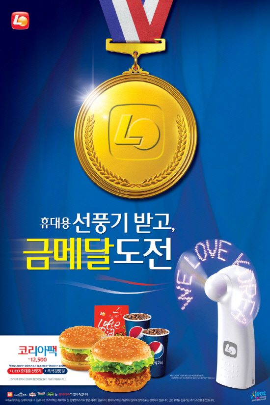 대한민국 QSR(Quick Service Restaurant) 대표 브랜드 ㈜롯데리아(대표 조영진, www.lotteria.com)가 대대적인 세계인의 축제를 앞두고 '코리아(KOREA)팩'을 출시, 이를 기념해 '금메달 10돈'을 증정하는 등 다양한 경품 이벤트를 진행한다.