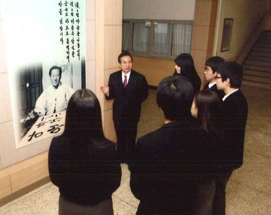 '제2의 정주영 설립자 育成'이 교육의 근간이라고 밝히는 현 교장은 "학력증진 뿐만아니라 인성교육의 중요성을 강조하여 주5일제 수업이 전면적으로 도입되기 전부터 민족 정체성을 기르기 위해 시조, 창, 판소리, 사군자, 검도 등의 예체능 수업을 실시해 인성함양은 물론 교육적인 성과까지 얻게 되었다"고 말한다.