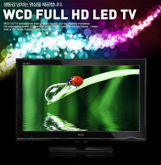 더블유씨디의 WCD 32인치 풀HD LED TV(모델명: WCDLE3200, 이하 WCD)는 피아노블랙하이그로시코팅을 적용하여 디자인부터 타 중소제품을 압도한다.