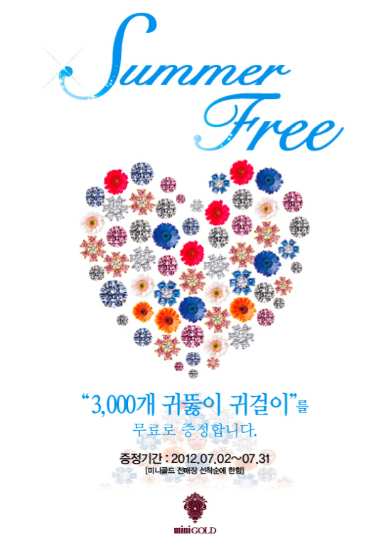 미니골드가 브랜드 파워 9년 연속 1위 수상을 기념해 고객 감사의 의미로 마련된 '미니골드 썸머 프리'는 귀를 뚫지 않은 소비자가 미니골드 온·오프라인 매장을 통해 회원가입을 하고 가까운 미니골드 매장을 방문하면 9K 귀뚫이 귀걸이를 선물 받을 수 있는 이벤트로 총 3000명에게 선착순으로 증정된다.