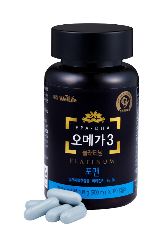 대상 건강사업부 대상웰라이프가 고순도 원료를 함유한 프리미엄 라인인 '오메가3 플래티넘' 3종을 출시했다.