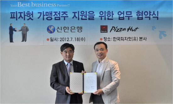 프랜차이즈론은 은행이 프랜차이즈 브랜드의 인지도와 안정성 등을 심사한 뒤 가맹점 주인에게 한도액 내에서 무담보 저금리 대출을 해주는 제도다. 이번 협약을 통해 피자헛 신규 가맹점주는 창업비용의 부담을 줄이고 기존 가맹점주들은 다양한 금융혜택을 지원받게 된다.