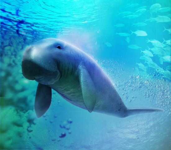 주제관의 메인쇼인 '생명의 샘'에 등장하는 바다 생물은 바로 듀공. 주제관의 마스코트 듀공(Dugong)은 산호초가 있는 바다에서 생활하는 초식해양포유류로서, 바다소(Sea Cow)라고도 불린다. 멸종위기에 처해 있어 생태계 회복의 개척자이자 생물종다양성의 지표를 나타내는 개념인 깃대종의 대표적인 예로 꼽힌다. 특이한 생김새와 함께 새끼를 안고 젖을 먹이는 등의 인간과 비슷한 행동양식으로 인해 인어 탄생신화와 결부된 풍부한 스토리를 가지고 있다. 듀공이란 이름 또한 말레이어로 '바다의 아가씨', '인어'를 가리키는 'Duyong'에서 유래되었으며, 인간과 바다의 매개자로서의 역할을 하고 있다.