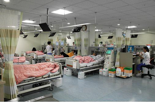 혈액투석 장비도 새롭게 도입했다. 일본 Nikkiso 사의 DBB27모델 8대와 독일 FMC사의 4008S V10 모델 12대를 활용해 안전하고 편리한 투석치료를 실시해온 여의도성모병원은 이번 리모델링에 맞춰 독일 FMC사의 최첨단 고효율 혈액투석기 5008S 모델을 4대 도입했다. FMC 5008S는 실시간 투석효율을 감시할 뿐만 아니라, 체외순환 혈액의 온도를 감지함으로써 투석 중 저혈압에 빠지는 가능성을 억제할 수 있는 강점이 있다.