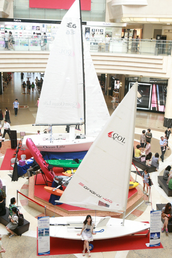 AK플라자 분당점은 29일까지 1층 열린광장에서 '럭셔리 요트 페어'를 열고, 6500만원 상당의 '엘리어트 6m(ELLIOTT 6m)'를 비롯해 '딩기420', '카약' 5종류 등 다양한 요트를 전시한다.