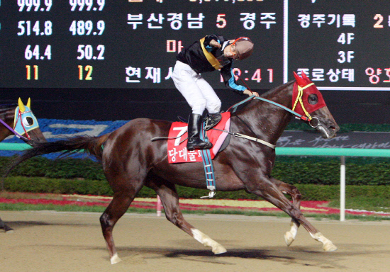 직선주로에 접어들면서 '당대불패'는 경주로 중앙에 위치하며 선두 굳히기에 들어갔고, 뒤따르던 '스마티문학'이 막판 무서운 기세로 뒤를 ?았다. 하지만 선행 작전에도 불구하고 끝까지 지치지 않는 체력을 보여준 '당대불패'가 '스마티문학'을 2마신차로 따돌리고 안방에서 국내산마의 자존심을 지켜냈다.
