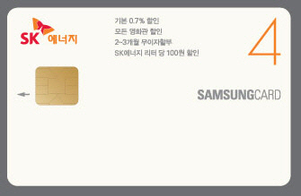 'SK에너지 삼성카드4'는 전국 SK주유소에서 리터당 100원 할인 혜택(이용금액 회당 10만원, 월 40만원까지 할인)을 제공한다.