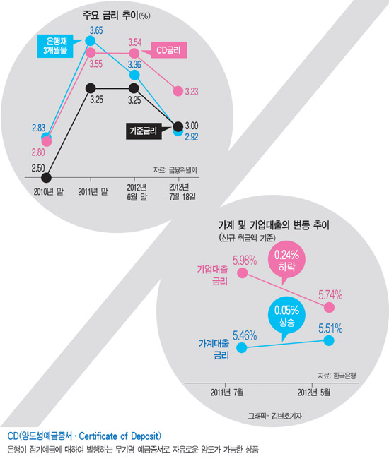 회사원 이모씨(42·서울 목동)는 요즘 어이가 없다. 은행들의 CD(양도성예금증서) 금리 조작 의혹 때문이다. 5년전 이씨는 어렵사리 내집 마련을 했다. 초등학교에 다니는 아이 교육을 생각해 이사를 결심했고, 결혼후 10년간 모았던 돈과 1억5000만원을 대출(CD금리연동대출)해 아파트를 장만했다. 2년마다 오르는 전세금 때문에 큰 마음을 먹었다. 그동안 집값은 떨어지고 대출 이자는 줄지 않았다.