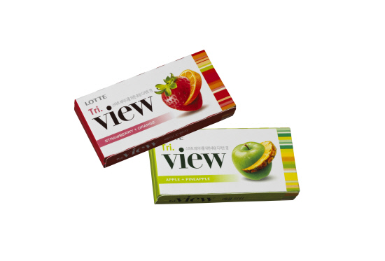 롯데제과(대표이사 김용수)는 천연과즙 젤리를 넣은 3층(3Layers)구조 무설탕껌 '트리뷰(Tri.View)'를 선보였다.