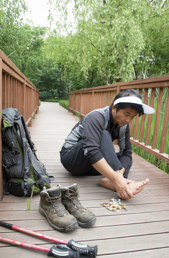 신던 신발 가져가기=새 신발을 가져가면 발에 상처가 잘 난다. 오래 걸어야 할 경우, 오전과 오후에 신발을 바꿔 신어서 발이 자극을 받는 위치를 다르게 해줘야 물집이 생기지 않는다. 바닷가에서도 맨발로 돌아다니지 않는다.