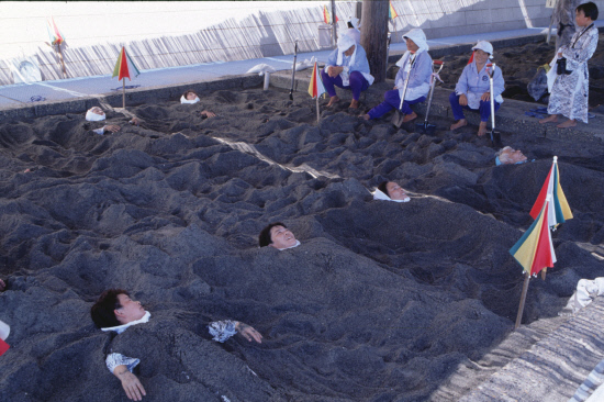 다음 여정은 이브스키다. 가고시마만의 입구에 자리 잡고 있는 이브스키는 도시 전체가 화산대에 속해 있어 모래찜질과 이브스키 온천관광으로 유명한 곳이다. 이브스키의 명물은 '검은 모래찜질'. 이브스키지역은 화산재의 영향으로 모래가 검은색을 띠어 '검은 모래찜질'을 즐길 수 있다. '스나무시'라고 불리는 모래찜질은 바닷가 모래 아래의 뜨거운 온천수와 지열을 이용한다. 데워진 모래에 사람이 눕고 모래를 덮어 천연의 사우나 효과를 누릴 수 있다. 적당히 기분 좋을 정도로 뜨끈한 '검은 모래찜질'로 여독을 풀어낼 수 있다.
