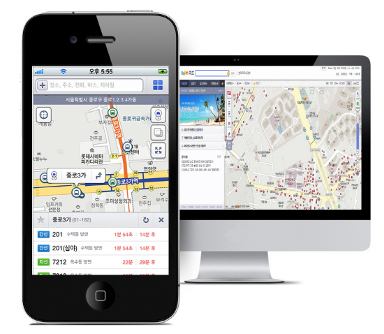 다음커뮤니케이션은 메뉴 버튼과 지도내 장소명 클릭만으로 장소정보와 길찾기를 쉽고 빠르게 이용할 수 있도록 PC와 모바일앱 지도를 개편했다.
