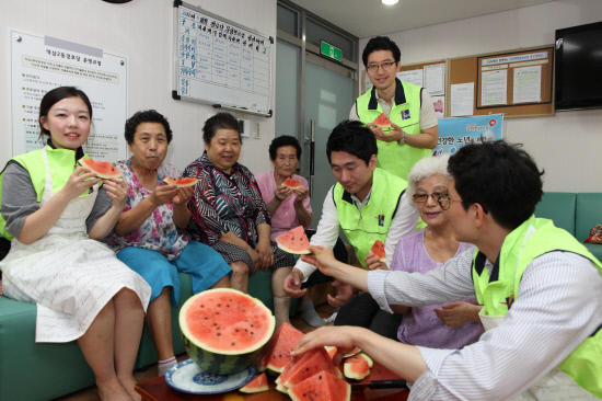 SPC그룹(회장 허영인)이 10일 오전 서울 용산구 지역 내 독거노인 가정을 방문해 수박과 빵을 전달하는 'SPC해피프라이데이' 봉사활동을 진행했다.