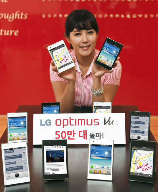 LG전자가 올해 3월 출시한 전략 LTE 스마트폰 '옵티머스 뷰(Vu:)'가 국내시장 누적판매 50만대를 돌파했다.