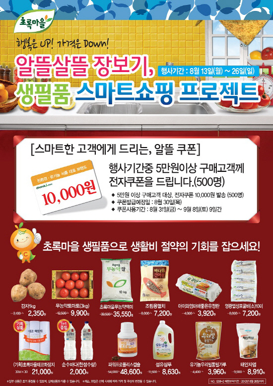 이번 초록마을의 '생필품 스마트쇼핑 프로젝트'는 오는 8월 26일까지 진행된다. 자세한 내용은 홈페이지 참고(http://www.choroki.com). 송진현 기자 jhsong@sportschosun.com