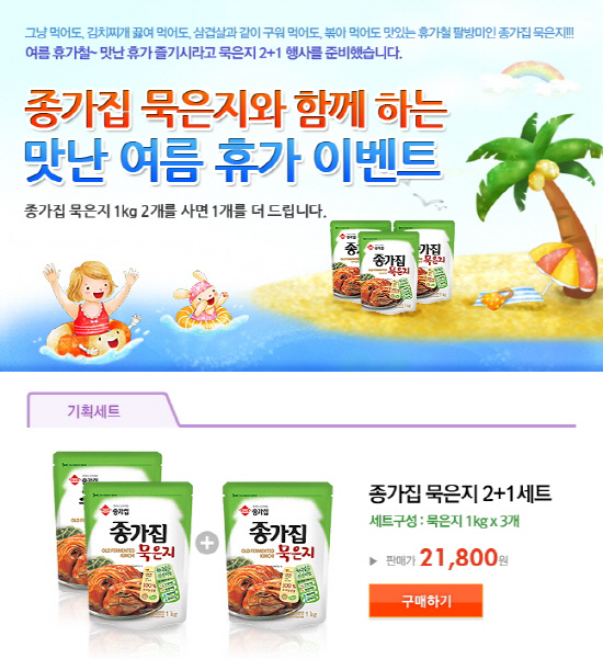 문성준 종가집 마케팅 팀장은 "'1+1' 이나 '반값할인' 등의 이벤트는 고가의 경품은 아니지만 실질적인 혜택을 준다는 이유로 소비자들이 선호하고 있어 주로 생필품을 중심으로 행해지고 있다"고 말했다. 송진현 기자 jhsong@sportschosun.com