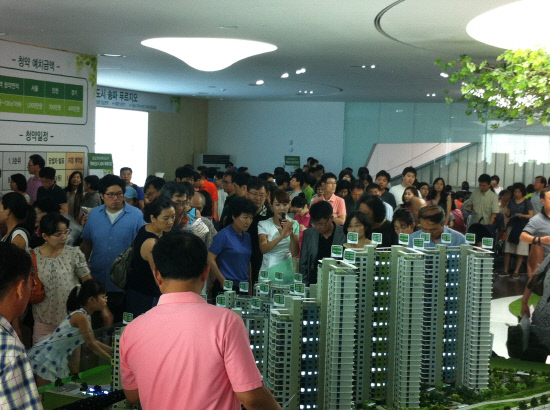 지난 17일 개관한 '위례신도시 송파 푸르지오' 견본주택에 장마와 무더위 속에서도 주말 포함 3일 동안 약 3만여명의 방문객이 몰려 뜨거운 관심을 나타냈다.
