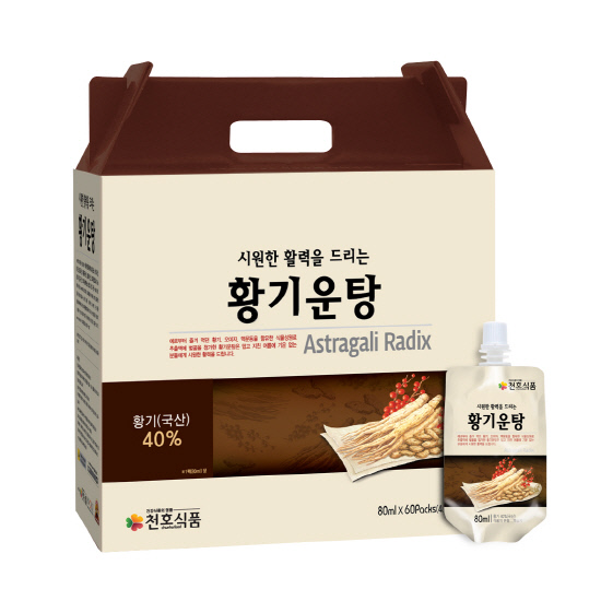 천호식품의 가을 신제품 <황기운탕>은 활력 증진에 좋은 황기, 오미자, 맥문동을 진액으로 추출한 제품이다. 황기, 오미자, 맥문동은 모두 국산으로 원료 품질에 신경을 썼다. 황기는 오래전부터 몸이 허한 사람에게 도움이 되는 식물로 알려졌다. 맥문동은 수분을 보충해주는데 뛰어나다. 오미자는 심신 안정과 새콤달콤한 맛을 더한다. 또 전통방식의 옹기에 약 1년간 숙성된 오미자 발효효소를 선별해 담았다.