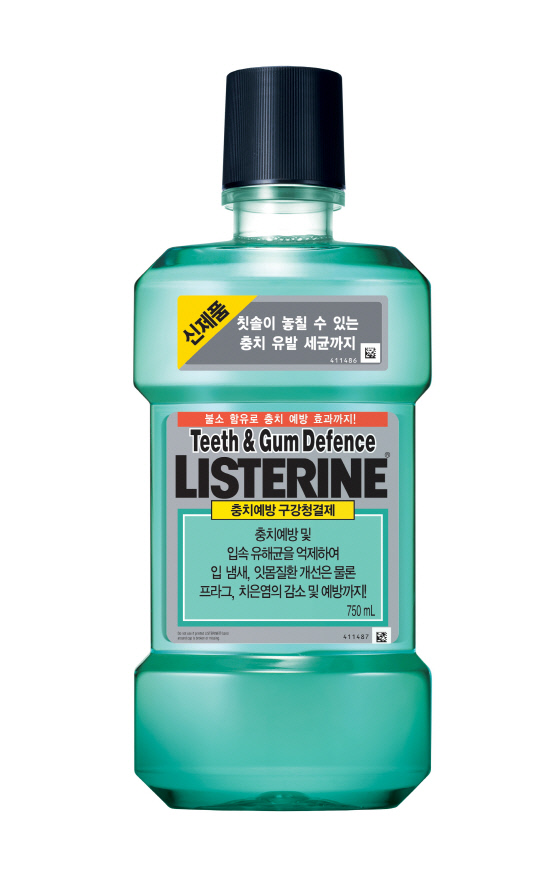 신제품 '리스테린 Teeth & Gum Defence'는 유칼립톨, 치몰, 살리실산메칠, 멘톨의 4가지 주성분과 불소의 조합을 통해 칫솔이 닿기 어려운 곳에 남아 있는 충치 유발 세균을 억제시켜 준다. 하루에 두 번, 양치 후 30초 동안 사용하는 것만으로 충치예방은 물론 구강 내 유해 균 99.9%가 억제되고, 플라그 및 잇몸염(치은염)의 예방 및 감소, 치석생성예방 및 감소, 구취제거에 효과를 보인다.
