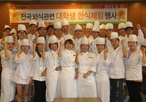 이번 행사에는 경희대, 우송대, 수원여대, 전주대 등 약 30명의 학생들이 참가해 대한민국 갈비명장이자 청와대 조리 책임자 출신인 김진민 총주방장으로부터 양념갈비와 냉면 등 한식에 대한 조리 강좌를 들으며 직접 음식을 만들어 보는 체험시간을 가졌다.